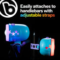 - Includes 1 colorful weather-resistant LED headlight, 1 red weather-resistant LED taillight, and mounting straps