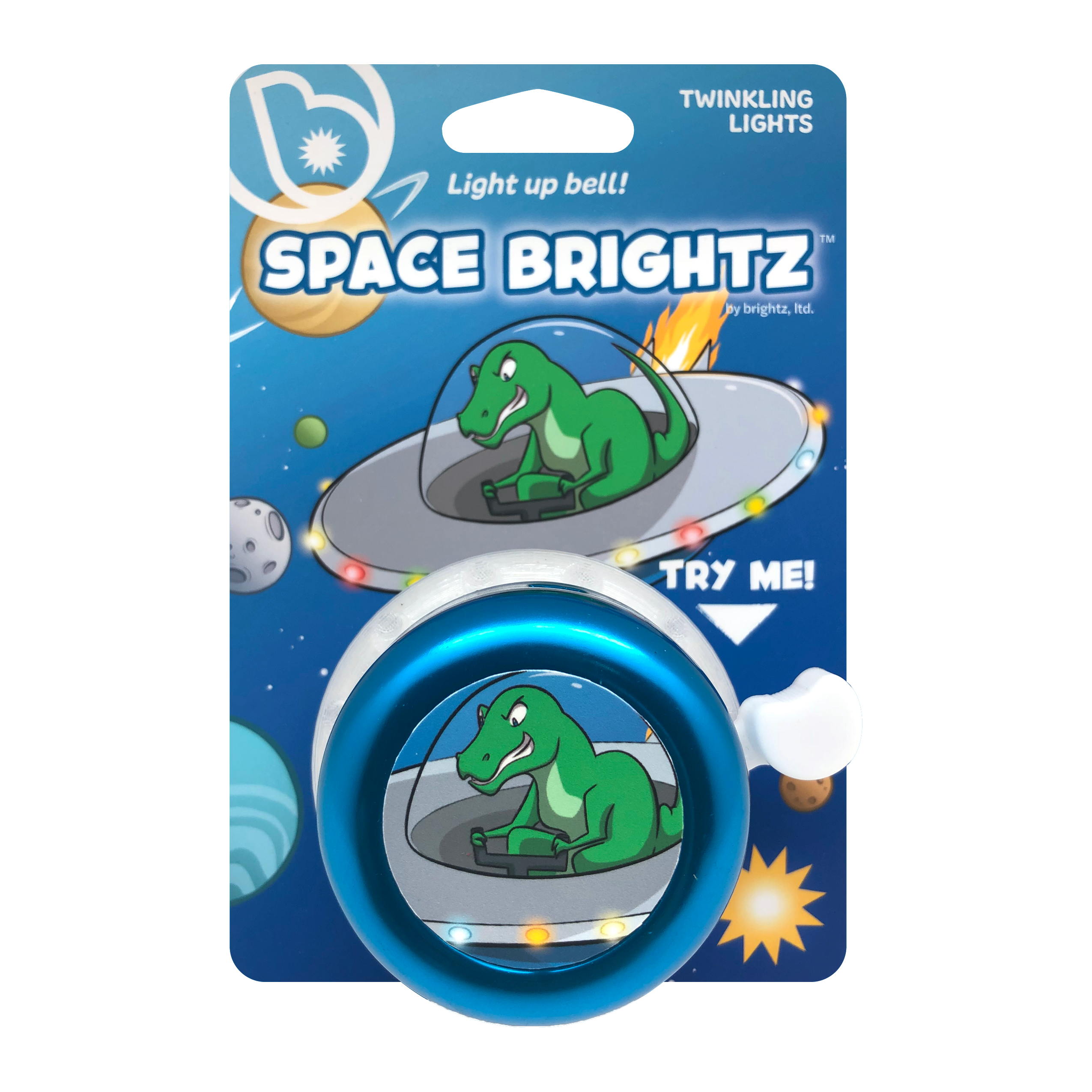Let their imagination take off with Space Brightz—the magical bike bell that lights up with every ring! With twinkling multicolor lights and an included unicorn or dinosaur icon sticker, this bell brings a burst of personality and glow to any kid’s ride. Every chime activates a colorful light show, making each adventure feel out of this world! For ages 5 and up.